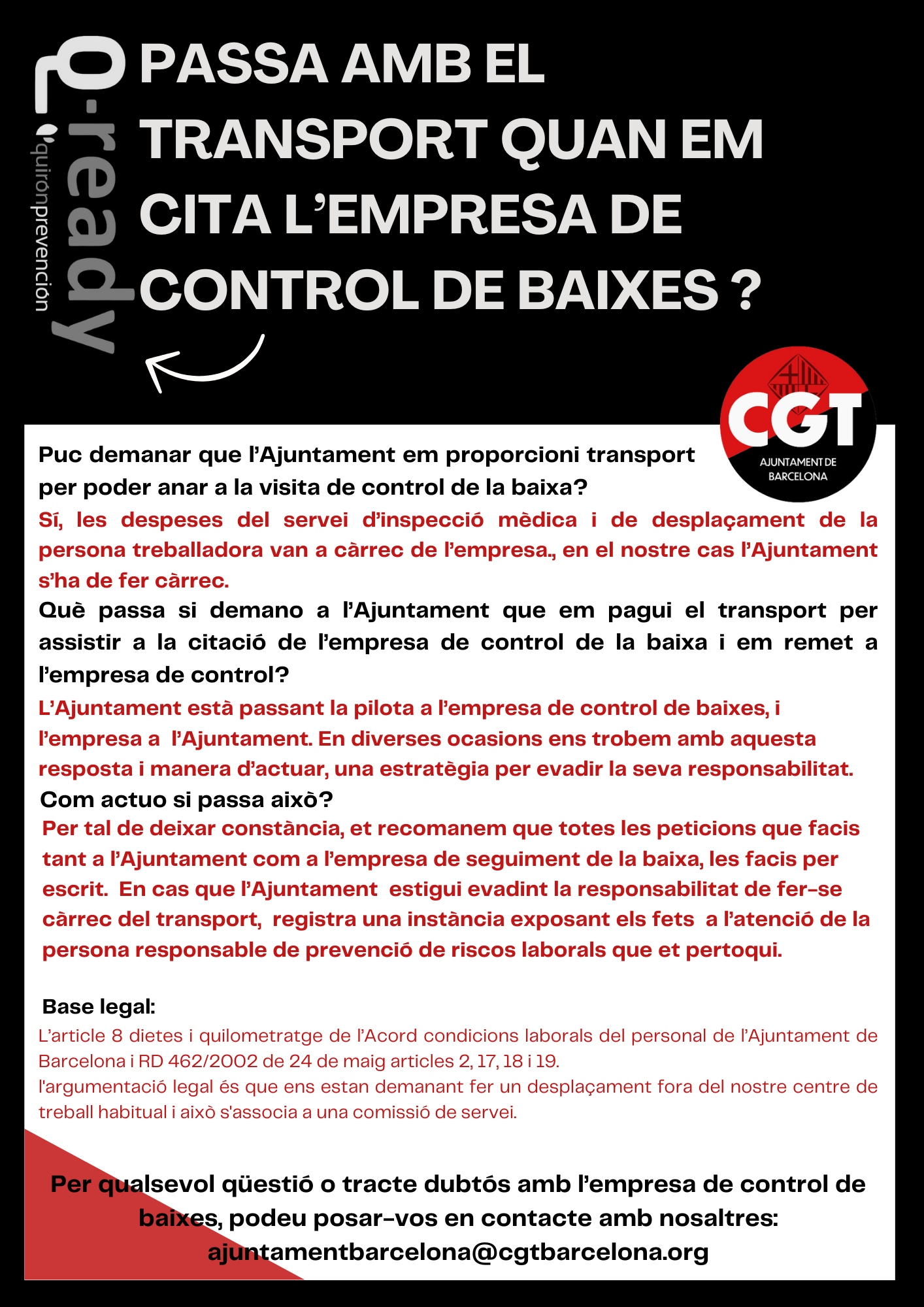 A continuació, us fem arribar una guia per fer front al conflicte que ens feu arribar sobre el pagament del transport quan ens citen a la visita de l’empresa de seguiment de baixes.
