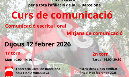 Comunicació escrita i oral. Relació amb els mitjans de comunicació. La formació està dirigida a tota la afiliació de CGT Barcelona que...
