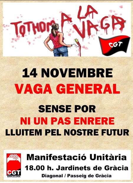 Tod@s, trabajadores, desempleados, jóvenes, estudiantes, pensionistas, desahuciados, excluidos, con papeles o sin papeles… toda la población, todas las organizaciones sociales, sindicales, estamos llamados a la Huelga para hacerla grande, para conseguir los objetivos propuestos y que el Gobierno y los poderes atiendan a la calle, al pueblo.
