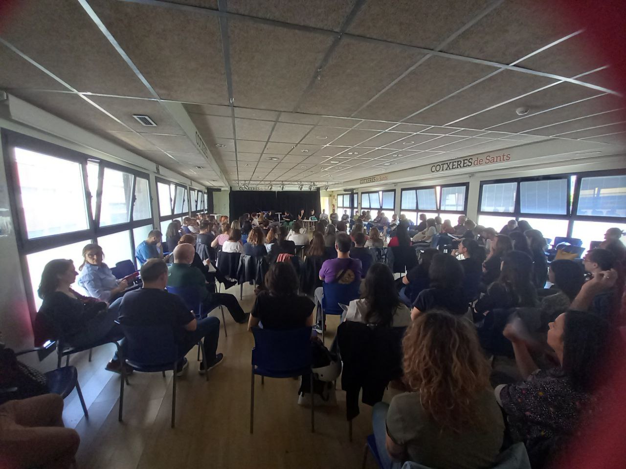 El dijous 9 de maig vam celebrar una assemblea general de treballadores de l’Ajuntament de BCN a cotxeres de sants, amb més d’un centenar d’assistents. Quin goig trobar-nos i veure la sala plena! A banda de l’èxit d’afluència, va haver-hi molta participació i moltes treballadores vam compartir les lluites de cada sector, així com els neguits del dia a dia la feina.