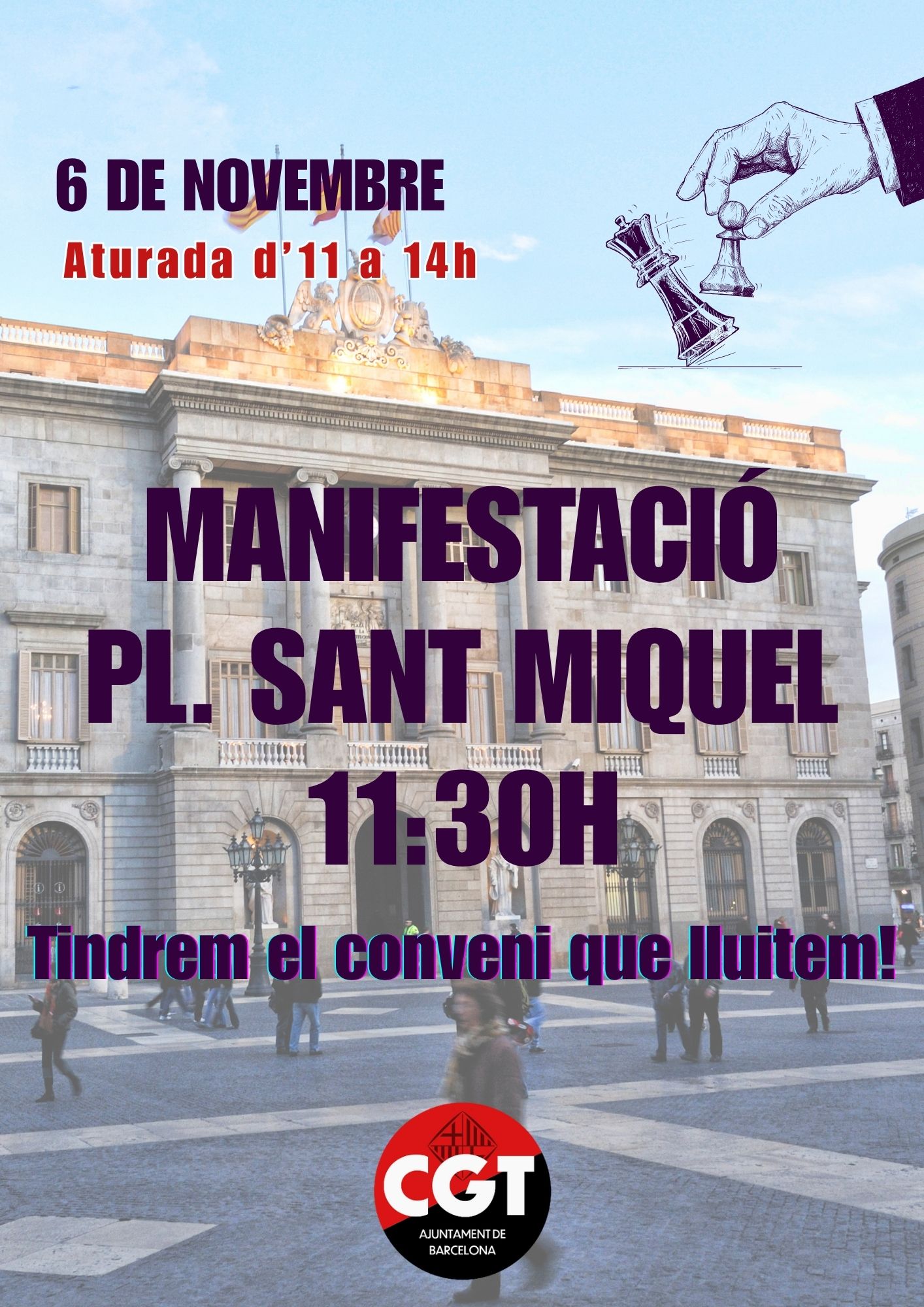 6 de novembre: Aturada d’11 h a 14 h – 11.30 h Plaça Sant Miquel. Manifestació.